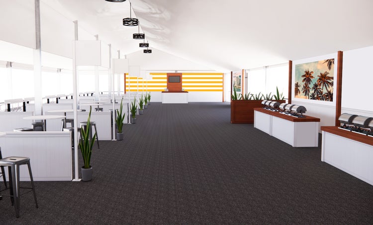 Nestled between the 9th and 18th greens, the Brickell Avenue Pavilion is a shared, open-air venue designed for seamless networking and entertaining. The all-inclusive setting features a reserved space with tiered seating, personalized company branding and upgraded food and beverage offerings — creating an unforgettable experience for every guest.