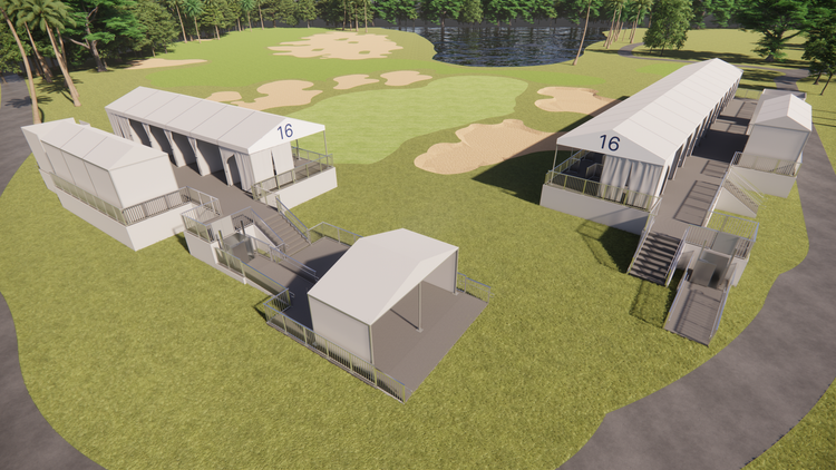 Positioned behind 16th green, the Lincoln Road Cabanas are situated behind the green. These venues offer a private, elevated experience in the heart of the action. Each cabana accommodates up to sixteen (16) guests in a shaded lounge oasis with a dedicated patio viewing area — the ideal setting to watch the top PGA TOUR players battle on this thrilling par-4.